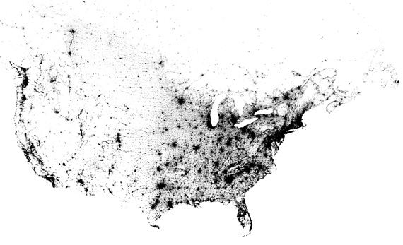 Tilastot ovat kiintoisia jo itsessään, mutta eilen tuli vastaan netissä kiintoisa projekti niiden ympärillä. Siinä tilastoharrastelija on sijoittanut väestölaskennan lukemat kartalle niin, että jokainen näiden kahden maan asukas sijaitsee kartalla alueella jossa asuu. Tällä tavoin saadaan erittäin kiinnostava kartta, mistä käy välittömästi ilmi, että suurimmat väestökeskukset ovat itärannikolla. Keskilänsi eli Midwest on sangen harvaanasuttua aluetta niin Yhdysvalloissa kuin Kanadassakin, kun taasen länsirannikolla on jälleen suuria asutuskeskittymiä.