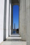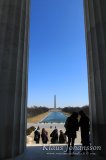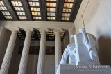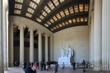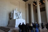 Monumentille noustaan leveitä portaita pitkin, joiden yläpäästä aukeaa hieno maisema National Mallille. Portaiden yläpäässä sijaitsevan pylväikön välistä näkyy myös itse temppelin herra, marmorisella istuimellaan levollisesti istuva Abraham Lincoln. Jättimäinen patsas on viisi metriä korkea, mutta on pakko sanoa, että odotin sen olevan vieläkin suurempi. Mittasuhteet ovat kuitenkin sopuisat ympäröivään temppelitilaan nähden ja kokonaisuus on näyttävä.