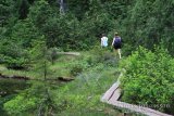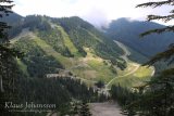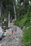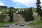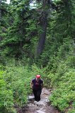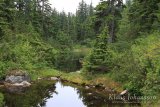 Vaikka eletäänkin jo heinäkuun loppua, oli huipulla vielä pieniä nokareita lunta. Ylhäällä polku erkanee laskettelurinteiden lähistöltä ja suuntaa keskemmälle metsää. Karhu edelleen tuoreena mielessämme pidimme meteliä hiipparoidessamme syvemmälle pöheikköön. Ympäröivä metsä toi mieleen Suomen lapin, sillä tällä korkeudella puut ovat alavampia alueita kitukasvuisempia. Siellä täällä on myös pieniä sulaneen lumen muodostamia suolampia, joita halkovat pitkospuut. Pääosan aikaa polulla ei meinaa edes muistaa että ollaan vuorella, sillä Cypress Mountainin huippu on sangen laakea. Polku kyllä kulkee jatkuvasti ylös ja alas, mutta huipun laidalta toiselle on matkaa sen verran, että varsinkin keskemmällä unohtaa täysin olevansa vuoren laella.