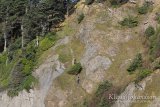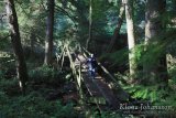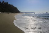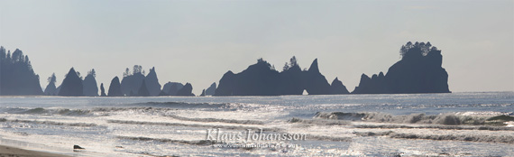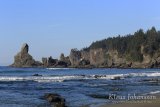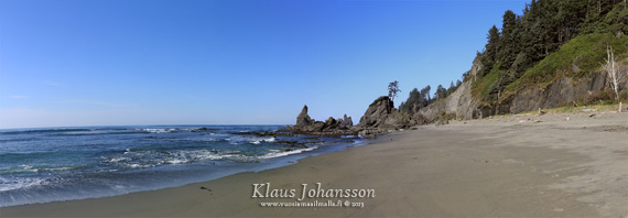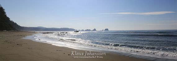 Sunnuntaina nukuimme pitkään ja lähdimme liikkeelle vasta lounaan jälkeen. Suuntasimme alueen toiselle kuuluisalle nähtävyydelle, Shi Shi Beachille. Tämä Yhdysvaltojen parhaimpiin salaisiin rantoihin rankattu ranta sijaitsee Neah Baysta noin 10 kilometriä etelään. Rannalle pääsee vain vaeltamalla noin kolme kilometriä parkkialueelta. Polku oli ihan nättiä metsämaastoa, mutta puolet matkasta erittäin mutainen. Muita retkeilijöitä ei ollut polulla monia, mutta joillakin näkemillämme jalkineet olivat sellaiset, että niistä ei kyllä tuon reissun jälkeen ollut varmaan mitään jäljellä.