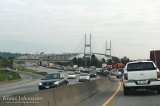 Pääsimme lähtemään töistä perjantaina vasta hieman kolmen jälkeen, joten jouduimme ajamaan ulos kaupungista kaikkein pahimpaan ruuhka-aikaan. Ensimmäinen koetus olikin päästä Fraser Riverin ylitse kohti rajaa. Tiesimme jo ennalta George Massey Tunnelin ruuhkaiseksi, joten päätimme kokeilla onneamme 6-kaistaisen Alex Fraser Bridgen kautta. Sielläkin liikennettä kuitenkin oli niin, että saimme madella parikymmentä minuuttia vain päästäksemme sillalle.