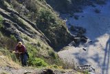 Rannalta on pienoinen nousu takaisin metsäpolulle, sillä rantakallio on tältä kohdin jyrkkä. Kallioseinämään onkin kiinnitetty pitkä köysi, jota pitkin könytään ylös. Kokemus ei ollut kuitenkaan niin pelottava, vaan ennemminkin hauska ja pääsimme hyvin polulle.