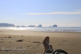 Itse ranta oli uskomaton ja kuten mainostettua ”salainen”; valtava autio hiekkaranta kaukana kaikesta. Olo oli kuin toiselta planeetalta istuessamme lämpimällä hiekalla nauttien auringosta ja katsellen rantaan huuhtovaa Tyyntä valtamerta. Tuntui kuin olisimme omistaneet koko rannan, sillä yksittäisiä ihmisiä näkyi vain muutamaan otteeseen. Niinpä asettauduimmekin rantaan ajautunutta ajopuuta vasten hiekalle makaamaan, otimme kengät jalasta ja annomme auringon helliä meitä. Puoli tuntia lämmössä torkkuessa oli ehkä rentouttavinta mitä voi vain kuvitella. 💡