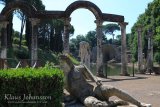 Italiassa on moottoriteillä tietulleja, joten ne välttääksemme kiersimme Rooman kehätietä pitkin pienemmälle paikallistie Via Tiburtinalle. Sitä pitkin ajelimme kohti sisämaata ja Tivolin kaupunkia. Noin 30km Rooman keskustasta ajettuamme, hieman ennen Tivolia, poikkesimme Villa Adrianan palatsin raunioilla. Kyseessä on vuonna 1999 UNESCO:n maailmanperintölistalle lisätty suuri palatsialue, jonka rakennutti vuosina 118-134 keisari Hadrianus (kyllä, se sama Castel Sant’Angeloon haudattu keisari).