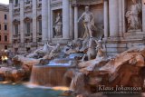 Hurjan näköisistä patsaista tokeennuttuamme, jatkoimme Trevin aukiolle, jonka luona oli vielä iltakahdeksalta hyvin vilkasta. Pystytimme kameramme jalustalleen ja otimme muutamat kuvat suihkulähteestä hieman jo hämärtyneessä iltavalaistuksessa. Aurinko laski sen verran hitaasti, ettemme jaksaneet odottaa pimeään saakka. Matkaa oli jatkettava, sillä edessä oli vielä pitkä kävely.