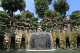 Huvilan vehreä puutarha on pengerretty kolmeen tasoon huvilan alapuoleiselle rinteelle. Puutarha on maailmankuulu lukuisista suihkulähteistään, jotka saavat vetensä läheisestä Aniene-joesta, joka virtaa alas kukkuloilta ohi Tivolin. Myös huvilan alla sijaitseva lähde tuottaa veden moniin puutarhan suihkulähteistä. Yhteensä puurtahan alueella on noin 500 yksittäistä vesisuihkua, mikä on hämmästyttävä määrä. Puutarha on hyvin vehmas ja suurten puiden varjossa on leppoisaa kävellä kuumanakin päivänä (lämpötila tuona tiistaina oli jälleen sen +35 astetta) suihkulähteiden lorinaa katsellen ja kuunnellen. Itse asiassa suihkulähteiden luona on virkistävää kävellä, sillä tuuli painaa hienoisen viilentävää vesisumua iholle.