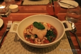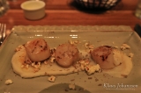 Oma valintani muodostui kiitospäivän erikoismenusta ja sen alkuruokana tarjoiltiin kampasimpukkoja kera tryffelipopcornien ja mukulasellerisoseen. Pääruokana tuotiin herkullinen paahdettu silosimppu hummeriliemessä. Illallisen päätti ajankohtaan kuuluva kurpitsapiiras tiramisu jäätelön kanssa.