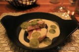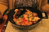 Niinan valinta alkupalaksi oli tonnikalasashimi omena-, inkivääri- ja sitrusvinaigretten kanssa. Pääruoka oli länsirannikkomainen paella, jossa oli lohta, ruijanpallasta, katkarapuja sekä erilaisia simpukoita sahramiriisin kanssa. Jälkiruoaksi Niina valitsi vielä herkullisen juustolautasen. Ruoan täydensi ravintolan elektroniselta viinilistalta valittu valkoviini, joka kävi sattumalta myös täysin yksiin Niinan keltaisen neuleen kanssa. 🙂