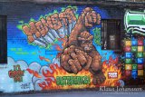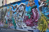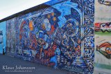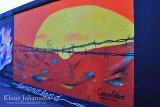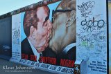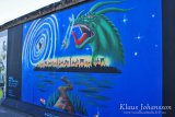Nyt kaksi vuotta myöhemmin Berliinissä kovin yleinen vandalismi on jälleen kohdellut gallerian maalauksia kaltoin, mutta suurin osa oli edelleen kohtuullisen hyvässä kunnossa ikuistaa valokuvaan. Kuvani käsittävät vain osan muurin 105:stä maalauksesta, sillä mielestäni osa on täysin turhia ja melko mitäänsanomattomia. Itse asiassa muurin lähistöllä sijaitsee myös muutamia tyylikkäitä ja hauskoja maalauksia, muun muassa viereisen matkamuistomyymälän luona. 🙄