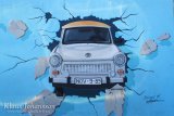Toinen monen Berliini aiheisen kirjan kannessa näkyvä maalaus on Birgit Kinderin Test the Rest, jossa itäsaksalainen Trabant tulee Berliinin muurin lävitse.