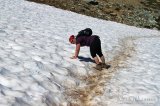 Polku alkaa kivikkoisena laskeutumisena huipulta alaspäin. Vaikka polku onkin hyvin merkitty ja hyväkuntoinen, tekee vaihteleva maasto etenemisestä hidasta. Alaspäin laskeuduttaessa ei tule kuuma, mutta puuttomalla alppialueella porottava aurinko grillaa vaeltajaa armottomasti. Pienellä huilitauolla näimme kivikossa juoksentevan murmelin, joita on vuorilla paljon ja jotka ovat myös antaneet nimensä koko vuorelle. Whistler Mountainin alkuperäinen nimi oli nimittäin London Mountain, mutta se muutettiin Whistleriksi 60-luvulla avautuneen ensimmäisen hiihtokeskuksen vuoksi. Nimi Whistler tulee puolestaan murmeleiden vihellyksistä (eng. whistle), mikä on hieman yllättäen ääni jonka nämä pörröiset jyrsijät päästävät.