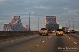 Päivä oli jo iltapäivän puolella, joten oli aika suunnata takaisin kaupunkiin. New Orleansin keskusta ei ole järin iso, mutta se näyttää silti hienolta 10-kaistaista Crescent City Connectionia pitkin ajettaessa. Tämä jättimäinen kaksoissilta on yksi New Orleansin tärkeimpiä liikenneväyliä ja yhdistää Mississippin eteläpuoleisen kaupungin joen pohjoispuolella sijaitsevaan liikekeskustaan. Silta oli pitkään tullisilta, mutta tullit poistettiin vain muutama päivä ennen vierailuamme. Olimmekin hieman epätietoisia tilanteesta ja sillan molemmissa päissä oli edelleen tulliportit, jotka kuitenkin ammottivat avoimina.