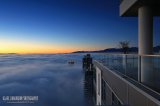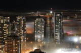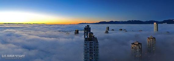 Sumusta otetuissa valokuvissa näyttää että sumuvaippa pysyisi vain paikoillaan, mutta todellisuudessa se virtaa jatkuvasti kaupunkialueen laidalta toiselle. Välillä sumu on niin alhaalla että jopa Metrotownin kukkulan päällä on täysin selkeää, kun taasen välillä sumuvaippa roikkuu vain viitisen kerrosta asuntomme alapuolella, niin lähellä että sitä voisi melkein koskettaa. 🙂