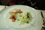 Me valitsimme tietenkin jälleen illan erikoismenun, jonka listalta valintani alkuruoaksi hieman erikoinen yhdistelmä savustettua lohta veriappelsiinin ja sitrus-ranskankerman kera. Makuelämys oli kiintoisa, mutta meni nopeasti parempiin suihin. Niina päätyi puolestaan vegaanimpaan vaihtoehtoon paahdetusta kurpitsasta endiivilehden sekä omenasuikaleiden kera.