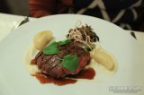 Pääruoaksi teimme molemmat varman valinnan pihvistä sipulimuussilla ja villisienillä ryyditettynä. Annoksen koko oli meitä yllättäneen kookas ja pihvi tarjoiltiin tottakai medium minuksena. 8)