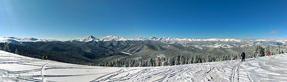 Myös Keystonen taaimmaiset rinteet sijaitsevat takavuorten suojissa ja hissien huipuilta näkee aina Breckenridgeen asti. Mosquito Rangen upea vuorijono hallitsee maisemaa ja sen kahdeksan huippua kohoaa yli neljän kilometrin korkeuteen, korkeimpana 4356 metriä korkea Mount Lincoln. Hurjista lukemista huolimatta Coloran Kalliovuoret eivät kuitenkaan näytä silmään niin korkeilta, sillä laaksonpohjakin on usein paikoin melkein kolmen kilometrin korkeudessa. Tässä mielessä kotivuoremme tuntuvat monin paikoin paljon jylhemmiltä, sillä niitä tarkastelee useimmiten lähes merenpinnan tasolta. Upea Coloradon vuoristo silti on, mutta hyvin erilainen kuin British Columbian rannikkovuoret.