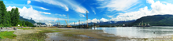 Tiistaiaamu valkeni useamman sateisen päivän jälkeen kauniina ja päätimme päiväretkemme suuntautuvan etelään Kitimatiin. Kitimat on 8300 asukkaan pikkukaupunki, joka on kuitenkin paljon kokoaan merkittävämpi ja usein uutisissa. Kaupunki sijaitsee pitkän ja leveän laakson perällä aivan Douglas Channelin vuonon perukalla, mikä tekee Kitimatista Vancouverin ja läheisen Prince Rupertin kanssa ainoan ideaalin syväsataman koko Kanadan pitkällä länsirannikolla.