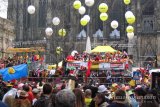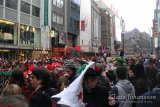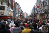 Mutta olihan se lähdettävä paikanpäälle näkemään tapahtuma omin silmin ja niinpä hyppäsin maanantaina yhdeksän tienoilla Dortmundista lähtevään karnevaalien erikoisjunaan. Jo Dortmundin päärautatieasemalla oli nähtävissä kymmeniä mitä erilaisimpiin värikkäisiin asusteisiin pukeutuneita ihmisiä ja hilpeää meininkiä. Matkan varrella alueen muista suurkaupungeista nousi kyytiin yhä enemmän ja enemmän väkeä. Itse asiassa väkeä nousi kyytiin niin käsittämättömän paljon, ettei tähän erikoispitkään junaan yksinkertaisesti mahtunut yhtäkään ihmistä enää puolivälin jälkeen! En ole koskaan nähnyt niin täyttää junaa ja pois jääminen ennen Kölniä oli yksinkertaisesti mahdotonta. Ihmisiä oli todellakin kuin Tokion metrossa, mikä oli pienoisen ahdistavaa noin kaksi tuntia kestäneellä matkalla. Kun lopulta saavuimme Kölnin päärautatieasemalle, kesti ihmisten purkautua asemalaiturilta portaisiin viisi minuuttia. Tässä vaiheessa tapahtuvan koko alkoikin hiljalleen valjeta minulle.