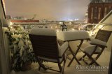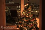 Talvinen parvekkeemme joulukuusemme loisteessa