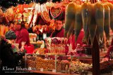 Tivolilta suuntasimme meitä lähinnä sijaitseville Rotes Rathausin markkinoille. Tänä vuonna markkina-alue on muotoiltu hieman uudelleen, sillä raatihuoneen edessä myllerrettävä metroaseman työmaa vie osan aiemmalta alueelta. Aluetta onkin laajennettu enemmän tv-tornin suuntaan, mikä toimii erittäin hyvin. Sama punertava maailmapyörä on jälleen paikallaan, samoin luistinrata Neptunbrunnenin suihkulähteen ympärillä. Myös kivat vanhanaikaisen kadun lavasteet ovat jälleen käytössä ja alueella on peräti kolme vanhanaikaista karusellia. Rotes Rathausin markkinoiden tunnelma onkin jälleen perinteinen ja rauhallinen, mikä vetää alueelle runsaasti kävijöitä ilta-aikaan.