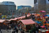 Nukkien esitystä kotvasen ihmeteltyvämme, kiersimme nopeasti Alexanderplatzilla olevat joulumarkkinapuodit, joita ei tänäkään vuonna ollut kuin joitain kymmeniä. Koukkasimme myös Alexan kauppakeskuksen takana sijaitevalla tivolialueella, jolla olikin jälleen monenlaista laitetta pystyttä. Maailmanpyörä oli viime vuotista kymmenen metriä pienempi, mutta silti 50 metriä korkea. Toinen uusi iso kokonaisuus tivolilla oli täysimittainen vuoristorata, joka oli koottu aivan Alexan kylkeen. Perjantai-illan ollessa vielä nuori ei tivolialueella ollut vielä hirmuinen meno. Ruuhkaisuuskin oli vielä pientä, joten alueen läpi oli mukava kulkea.