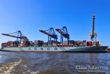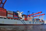 Tämän päivän globalisaatio sekä kaiken rahtaaminen Kiinassa sijaitsevilta tehtailta konkretisoituu hyvin satamaristeilyn aikana. Suurin satamassa tuona lauantaina ankkurissa ollut laiva oli Cosco Thailand, joka on niin kutsuttu Post-Panamax alus. Tämä tarkoittaa, ettei laiva mahdu enää Panaman kanavan vanhojen sulkujen lävitse. Viime vuonna valmistunut 8501 TEU:n (konttiyksikön) rahtilaiva on kuitenkin nykyisin vain keskisuuri konttilaiva, sillä suurimmat maailman merillä purjehtivat kuljettavat jopa yli 16000 TEU:n lasteja. Tästä huolimatta Cosco Thailandkin on vaikuttava näky vedenrajasta nähtynä, sillä seitsemässä kerroksessa olevat konttikasat tekevät laivasta todella korkean ja pituuttakin laivalla on ruhtinaalliset 334 metriä!