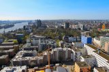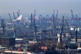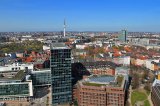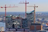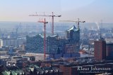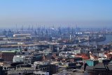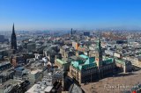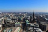 Myös Sankt Michaelisin kirkontorniin on pääsy, modernisti hissin kyydillä. Pitkä jono lannisti Niinan halun odottaa, mutta päätin itse punnertaa ylös portaita pitkin, mikä oli jälleen erittäin hyvää treeniä. Vaivannäkö kuitenkin palkittiin nytkin ylhäältä aukeavilla komeilla ulkomaisemilla yli kaupungin. Täältä käsin myös Hampurin satama-alue oli hyvin nähtävissä ja pienestä udusta huolimatta siitä sai sangen hyviä valokuviakin.