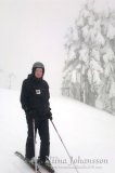 Jo hississä totesimme näkyvyyden olevan todella huono ja ylhäällä näkyvyys oli melkeinpä nolla metriä. Kauden ensimmäinen lasku tuossa kelissä ja vieraassa rinteessä, oli hiuksia nostattava kokemus. Valitettavasti keli ei tuosta parantunut, mutta rinteiden profiili alkoi pian painua mieleen. Oli silti hurjaa laskea paikoitellen täydellisissä whiteout olosuhteissa. Tummat ihmishahmot pystyi rinteessä sentään erottamaan, vaikka välillä tihku- ja vesisade tekivätkin hankalaksi katsoa eteenpäin. 😕