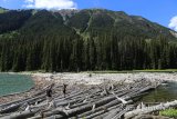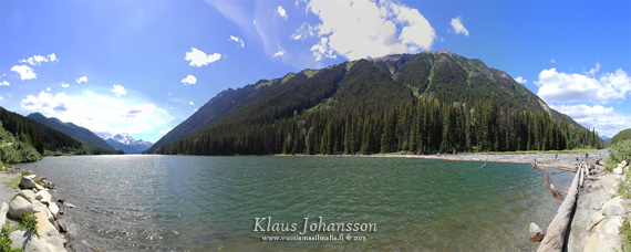 Jännästi vain kymmenisen kilometriä edempänä maasto muuttuu jälleen tiheäksi metsäksi, mikä kertoo siitä että juuri nähdyt upeat vuoret ovat syynä Lillooetin ja Lyttonin seutujen kuivuuteen. Tie on mahtava ajettava, sillä noin 100 kilometrin matka melkein Pembertoniin saakka on uutta asvalttia. Maisemat ovat kauttaaltaan upeat ja pakollinen pysähdyspaikka on Duffey Laken kohdalla. Pitkulan järven rannalla oli mukava paikka syödä eväinä olleita mansikoita ja keksejä, samalla kun katselimme horisontissa kohoavaa lumihuippuista vuorta. Paikalla oli monia muitakin, joita tosin tuntui kiinnostavan enemmän tuulen jokisuulle kasaama valtaisa puuryteikkö.
