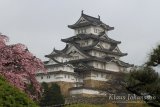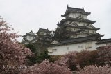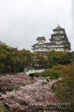 Matkalla linnalle ruokailimme keskustan tavaratalon japanilaisessa ravintolassa, jossa tarjonta käsitti melkoisen paljon raakoja mereneläviä. Ne kiltisti nieleskeltyämme jatkoimme kävellen kohti linnalle, jonne on Shin-Himejin juna-asemalta yhteensä noin kilometrin matka. Vielä aamupäivällä Akashi Kaikyo Bridgellä sää oli ollut harmaa, mutta kuitenkin sateeton. Himejissä vettä satoi kuitenkin koko siellä viettämämme ajan. Näin ollen linna ei ollut kaikkein edustavimmillaan valokuvissa, vaikka viimeiset kirsikankukat toivatkin vielä väriä kuviin. Jos meillä oli sään puolesta huonoa tuuria, niin hyvää tuuria oli myös rutkasti. Katselimme nimittäin Narassa televisiota japanilaisia uutisia. Sattumalta näkemästämme paikalliskanavan lähetyksestä ymmärsimme, että linnalla olisi alkamassa jonkinlainen suuri restaurointityö juuri pari päivää ennen Himejiin saapumistamme. Ymmärsimme myös, että linnaan ei olisi enää pääsyä turisteilta, mikä tuntui pisti harmittamaan jo etukäteen.