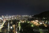 Yö oli jo laskeutunut Kobeen ravintolasta lähtiessämme, joten otimme hissin ylimpään 37. kerrokseen. Siellä halusimme vain nähdä ympäröivät maisemat, joita kerroksen ravintolan tarjoilija mieluusti esitteli meille kahdelle. Niistä ei saanut käsivaralta ihmeempiä valokuvia, mutta omasta huoneestamme sai kyllä huikeat kuvat Koben öisestä ydinkeskustasta. Loistavan aterian perään oli aivan mahtavaa nukahtaa huoneen ihanaan sänkyyn.