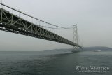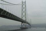 Aamulla herätys soi aikaisin, sillä meillä oli edessämme reissun kaiketi kiireisin päivä. Respassa päätimme lähettää rinkkamme lähetillä seuraavan yön hotelliimme, jotta emme joutuisi kantamaan niitä mukanamme koko pitkää päivää. Ennen yhdeksää kirjauduimme hotellista ja otimme metron Sannomiyaan. Siellä söimme aamiaisen tylsästi mäkkärillä, minkä jälkeen nousimme paikallisjunaan kohti länttä. Todella mukavalta vaikuttanut Kobe jäi näin jälkeemme ja matkustimme aina 19 kilometrin päähän Akashi Kaikyo Bridgelle. Kyseinen silta on japanilaisen rakennustaidon mestarinäyte, jota ei voi yksinkertaisesti ohittaa pysähtymättä. Kyseessä on maailman pisin riippusilta, jonka keskijänteen pituus on huikeat 1991 metriä! Se tarkoittaa melkein kahta kilometriä kuusikaistaista maantietä ilmassa! Vertailun vuoksi Ison-Beltin silta Tanskassa on keskijänteeltään 1624m (3. pisin) ja kuuluisa San Franciscon Golden Gate 1280m (9. pisin). Koko pituudeltaan Akashi Kaikyo Bridge on 3911 metriä, eli melkein neljä kilometriä. 😯