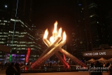 Neljä vuotta myöhemmin tapahtumasta on jäljellä enää lämmin muisto sekä sitä varten rakennetut upeat olympiarakennelmat. Näistä ehkä ikonisin on Coal Harbourin rannassa sijaitseva Olympic Cauldron eli olympiatulta pidätellyt valtava ”jääsoihtu”. Olemme käyneet rakennelmalla useasti ja se on upea jo itsessään, mutta ilman tulta se on kuitenkin näyttänyt hieman vaatimattomalta ja jättänyt meidät miettimään miltähän se onkaan mahtanut näyttää palaessaan kisojen aikana.