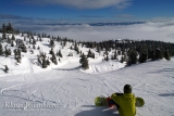 Päätimme kuitenkin lähteä mäkeen ja olimme heti tyytyväisiä päätökseemme. Vaikka keli olikin jäätävä ja lunta tuiskutti naamaan, oli rinteissä hiljaista ja aivan ideaalit olosuhteet. Ajetuille rinteille oli laskeutunut sellaiset kymmenen senttiä puuterimaista pakkaslunta, joka vain pöllysi mäkeä alas tullessa – aivan mahtavaa!