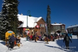 Aloitimme aamupäivän laskettelukeskuksen itäisimmillä rinteillä, jotka olivat leveitä ja mukavia lämmittelyrinteitä. Lämmin laskiessa ei kuitenkaan tullut kovan pakkasen johdosta ja jouduimmekin käydä sulattelemassa varpaita viiden ensimmäisen mäen jälkeen. Hieman ennen keskipäivää kävimme syömässä itse kylässä, joka on Kanadan suurin ski in/ski out kylä eli melkein jokaiselta kylän rakennukselta pääsee suoraan suksilla mäkeen.