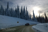 Starttasimme matkaan heti töiden jälkeen perjantaina ja lähdimme ajamaan kohti sisämaata. Matkalla keli oli mahtavan keväinen ja lumihuippuiset vuoret kimalsivat iltapäivän auringossa. Huolenamme oli kuitenkin millainen ajokeli olisi Hopen jälkeen pahamaineisella Coquihalla Highwayllä, jolla 1200 metrin korkeudessa tien varteen ilmestyivätkin paksut lumivallit. Ajokeli oli kuitenkin hyvä, vaikka loppumatkasta laskeutunut pimeys vaatikin liukkaalla kelillä tarkkaavaisuutta.