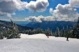 Ajomatka Vancouverista kesti noin kaksi tuntia ja perillä meitä odotti kaunis sinitaivas sekä asteen verran pakkasella oleva keli. Hemlock Resortin hissiliput maksavat suunnilleen saman kuin lähivuorillakin, mutta meillä kävi ”tuuri” kun saimme lippumme alkukauden hinnoittelulla ($40/henki). Tämä johtui siitä, että toinen keskuksen kahdetsa pitkästä hissistä oli aamupäivästä rikki ja avautui vasta iltapäivällä. Hissin kuntoon saaminen oli kuitenkin hyvä uutinen, sillä toinen hissi oli pahoin ruuhkaantunut aamupäivän aikana. Tai ruuhkaantuminen on suhteellinen asia, kun jonossa oli pahimmillaan ehkä noin 30 ihmistä. Kahden hengen vanha tuolihissi on kuitenkin niin hidas, että jonossa sai seistä viitisen minuuttia, mikä on enemmän kuin ylhäältä kesti laskea vauhdikkaasti alas.