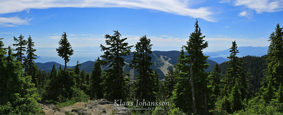 Maisemat huipulta antavat joka suuntaan, vaikka puut estävätkin täysin esteettömät maisemat. Kaupungin suuntaan näkyy vain muutamasta väliköstä, mutta Cypress Mountainin laskettelurinteet näkyvät hyvin alapuolella, taustallaan Bowen Island sekä tietenkin aukeana avautuma meri. Huikea on myös näkymä takavuorille, joilla on paljon etuvuoria paljon korkeampana vielä näin heinäkuun puolivälissäkin lunta.