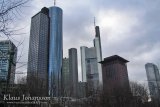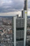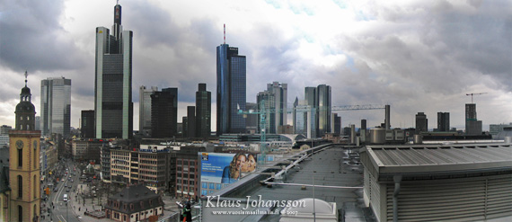 Kaupungissa on 25 yli 110-metristä rakennusta ja virallisen pilvenpiirtäjä mitan (150 metriä) rikkoo kymmenen rakennusta. Korkein rakennus on mastoineen 300,1 metrinen Commerzbankin torni, joka on kaupungin ehdoton maamerkki. Myös muut korkeat rakennukset sijaitsevat sangen tiiviisti keskustan alueella ja muutamilla aukioilla voikin pyörähtää 360 astetta nähden joka suunnalla kohoavan korkeita taloja. Näky tuntuikin suomalaisesta huikealta ja on vaikea uskoa olevansa vain 660 000 asukkaan kaupungin keskustassa, sillä ero tunnelmassa on vain 70 000 asukasta pienempään Dortmundiin tuntui hurjalta. Commerzbankin rakennus on nykyään Euroopan toiseksi korkein rakennus (korkein on Moskovassa sijaitseva Naberezhnaya Tower), mutta rakennusten yhteenlasketussa määrässä kaupunki ohittaa edelleen huomattavasti suuremmat kaupungit kuten Lontoo, Pariisi ja Moskova. Frankfurt on siis pilvenpiirtäjiensä suhteen edelleen sangen ainutlaatuinen kaupunki Euroopassa ja tämä olikin suuri syy vierailla siellä. 🙂