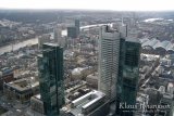 Keskustaan palattuani tapasin Niinan ja suuntasimme Galeria Kaufhof -tavaratalon ylimpään yhdeksänteen kerrokseen, jonka näköalatasanteelta aukeaa kaupungin paras näkymä pilvenpiirtäjiin. Tasanteella ollessa talot ryhmittyvät hienosti toistensa lomaan ja kokonaisuudesta saa hienon valokuvan.