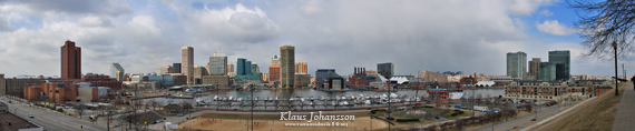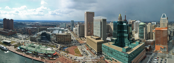 Akvaarion jälkeen oli aika tarkastaa mitä muuta Inner Harbourin alueella onkaan. Poukaman ympäristön havainnointiin tarjoutuu hyvä mahdollisuus sen eteläpuolella sijaitsevalta Federal Hillin kukkulalta. Sieltä nähtynä keskustan pilvenpiirtäjät asettuvat nätisti vierekkäin Inner Harbourin vastarannalla. Baltimoren korkein rakennus on 161-metrinen Transamerica Tower, mutta kaupungissa on kuitenkin 19 yli satametristä rakennusta, jotka muodostavat ihan mukavan siluetin.