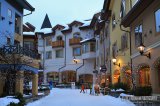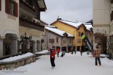 Perillä lämpötila oli nollan paikkeilla ja lunta oli kylässäkin toista metriä. Virallisen lumimittarin mukaan lunta olisi ollut 160 senttiä tuona viikonloppuna, mutta se jakautui hieman epätaisesti eri kohtiin vuoria. Kylä itsessään oli oikein mukavan näköinen ”alppikylä” pienellä keskustalla ja yövyimme aivan sen keskustassa sijaitsevassa neljän tähden hotellissa.