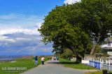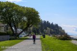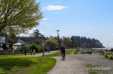 Crescent Beachin rannassa kulkee hieman Richmondin West Dyke Trailia muistuttava rantaraitti, joka on kauniina lauantaina ulkoilijoiden täyttämä. Pyöräilimme ensiksi niemen kärjessä sijaitsevan pienen puiston luokse, mihin on rakennettu pieni laituri. Rannassa lapset lennättivät leijaa laskuveden paljastamalla merenpohjalla, taustallaan vastarannalla sijaitseva Point Robersin niemi, joka on osa Yhdysvaltoja.