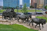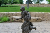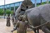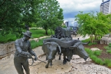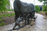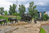 Rauhallinen aamu tarjosi hyvän tilaisuuden tutkia keskustassa sijaitsevaa suurta Spirit of Nebraska Wilderness muistomerkkiä. Tämä pronssista valettu muistomerkki kuvaa 1700-luvun pioneeriaikaa ja Amerikan lännenvalloitusta. Vastaavanlaisia muistomerkkejä on monessa muussakin Keskilännen kaupungissa ja ne ovat yleensä hienosti tehtyjä. Pronssinen karavaanisaattue on yksityiskohtia pullollaan ja osa hahmoista todella ilmekkäitä ja eläväisen näköisiä. Hieman aiemmin langenneen sateen jälkeiset sadepisarat hahmojen iholla tekivät niistä mielestäni vielä normaaliakin aidomman oloisia. 🙂