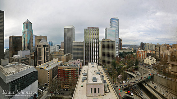 Ilmailusta kiinnostuneiden on ehdottomasti syytä ottaa Everettin tehdasvierailu listalleen ja se on helppo visiitti Seattlen keskustasta käsin. Kierroksemme jälkeen suuntasimme hiljalleen kohti keskustaa, jossa majoituimme lauantai-illaksi keskustan Marriottiin. Hotellin 23. kerroksen ikkunasta avautui mukava maisema ympäröivään keskustaan.