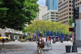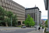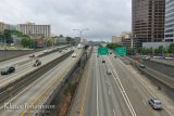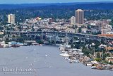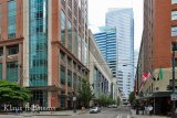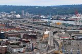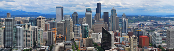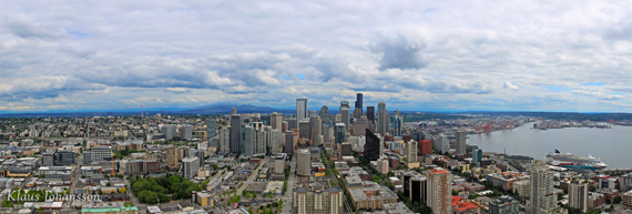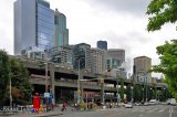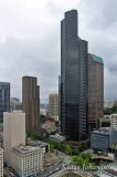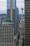 Seattlen halki kulkeva 10-kaistainen Interstate 5 on selkeä vedenjakaja Capitol Hillin ja toimistokeskustan välillä. Valtavaa moottoritietä on yritetty kattaa keskustan kohdalta jo vuosien ajan, mutta vasta pieni pätkä on tunneloitui. Tien länsipuolella kohoavat Seattlen keskustan korkeat pilvenpiirtäjät, joista kaikkein korkeimmalle kurkottaa 76-kerroksinen ja 287-metrinen musta Columbia Center. Tämä vuonna 1985 valmistunut pilvenpiirtäjä on Yhdysvaltojen länsirannikon toiseksi korkein rakennus ja sen huipulla sijaitsee koko läntisen Yhdysvaltojen korkein näköalatasanne. Valitettavasti tasanne oli kuitenkin kiinni sunnuntaiaamuna, minkä lisäksi keli oli pilvinen. Niinpä päätimmekin jättää kokemuksen seuraavaan Seattlen matkaamme.