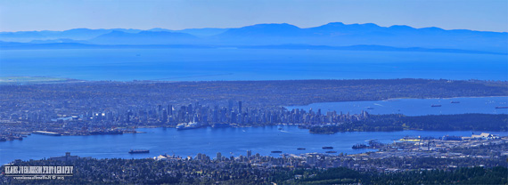 Perillä odottaa jylhä kalliokieleke jolta aukeaa upea maisema yli koko metropolialueen. Kilometrin korkeudelta näkee helposti Vancouverinsaarelle saakka ja Downtownin pilvenpiirtäjät näyttävät kovin matalalta. Vaikka keli olikin kaunis, oli maisema silti hienoisen udun sinertämä. Vierellä kohoavat sinisenä Grouse Mountain, Crown Mountain sekä muut North Shore Mountainsin huiput. Idässä puolestaan kohoaa Mount Bakerin aina valkoinen huippu.