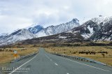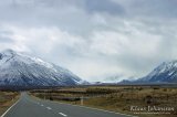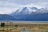 Hyvin nukutun yön jälkeen jatkoimme matkaamme. Rannikkoa myötäilevä 1-tie vaihtui 8-tieksi, joka on yksi Etelä-Alpit ylittävistä teistä. Vaikka lumihuippuiset vuoret näkyvätkin kaikkialle eteläsaarella, kestää niille ajaminen yllättävän pitkään. Ehkä tunnin suoraan vuoria kohti ajettuamme alkoi tie vihdoin hiljalleen nousta. 8-tie on hyväkuntoinen tie, jonka kulkee pitkin Burkes Pass solaa syvälle Etelä-Alppien keskelle. Vuorten keskelle päästyään tie kulkee Mackenzie Countryn suuren tasangon yli, jolla laiduntaa tuhansia lampaita. Alueella on myös kuvattu Taru Sormusten Herrasta -trilogian kohtauksia. Elokuvan kuvauspaikkoja on toistasataa ympäri Uutta-Seelantia ja ajoimme ainakin muutaman paikan läheltä. Maisemia oli kuitenkin vaikea yhdistää elokuvaan, sillä samanlaista vuoristoa ja tasankoja on vähän kaikkialla.