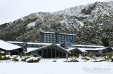 Pieni takapakki ei kuitenkaan jäänyt harmittamaan ja kylmässä hytisemisen sijaan ruokailimme kylän tasokkaassa Hermitage hotellissa, joka on samalla myös pienen kylän ainoa hotelli sekä merkittävä rakennus. Hotellin buffet-lounas oli aivan loistava, joten söimme itsemme kylläisiksi. Ruoan jälkeen ihailimme vielä hetken lumisia maisemia, jonka jälkeen lähdimme ajamaan takaisinpäin. Mount Cookia ei kylästä tai tieltä pysty aivan näkemään, sillä huippu sijaitsee pienen vaellusmatkan päässä vuorialueen keskellä. Huipulle on silti helppo päästä niin halutessaan helikopterin kyydissä. Helikopteriyrittäjiä on eteläsaarella runsaasti ja pieniä lentoasemia on siellätäällä. Helikoptereilla ja pienkoneilla paitsi kuljetetaan turisteja ihailemaan ympäröiviä maisemia yläilmoista, niillä myös tehdään tarkastuskäyntejä syrjäisille lammaslaitumille.