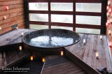 Kuuma allas pimenevän taivaan alla